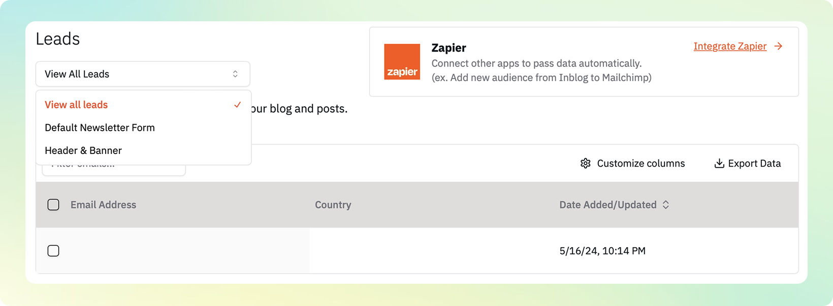 inblog supports Zapier integration for automating lead workflows. You can connect lead forms to external tools such as: