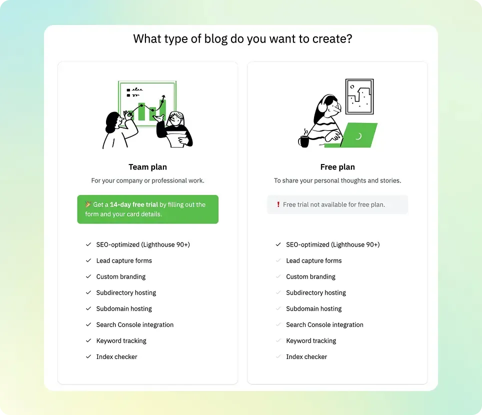 Team Plan 으로 블로그 생성