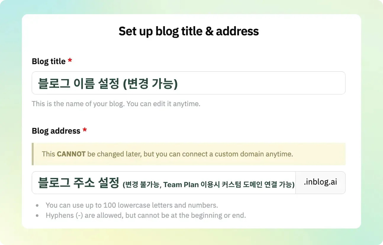 • 좋은 예) company-name.inblog.ai, concept-of-blog.inblog.ai 등