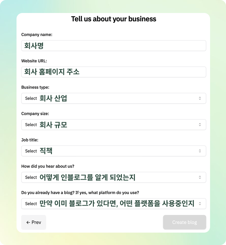 기업용 블로그로 운영하기 적합합니다. 인블로그 서비스가 제공하는 모든 기능 (도메인 연결, 리드 캡쳐 폼, 커스텀 디자인 등) 을 활용할 수 있습니다. 14일 무료 체험을 제공 드리며, 이후 언제든 구독 취소가 가능합니다.